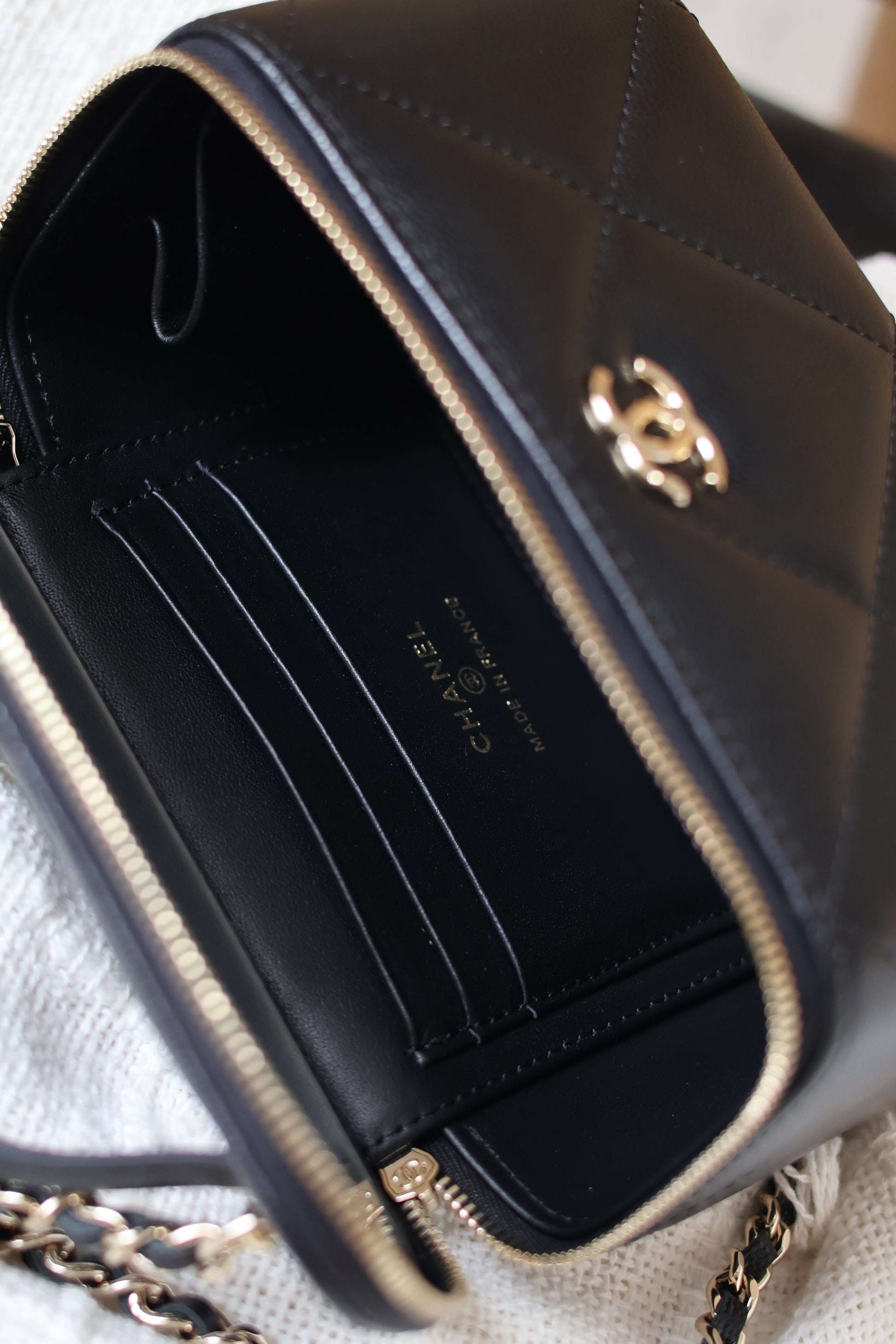 Grained Shiny Calfskin & Gold-Tone MetalBlack